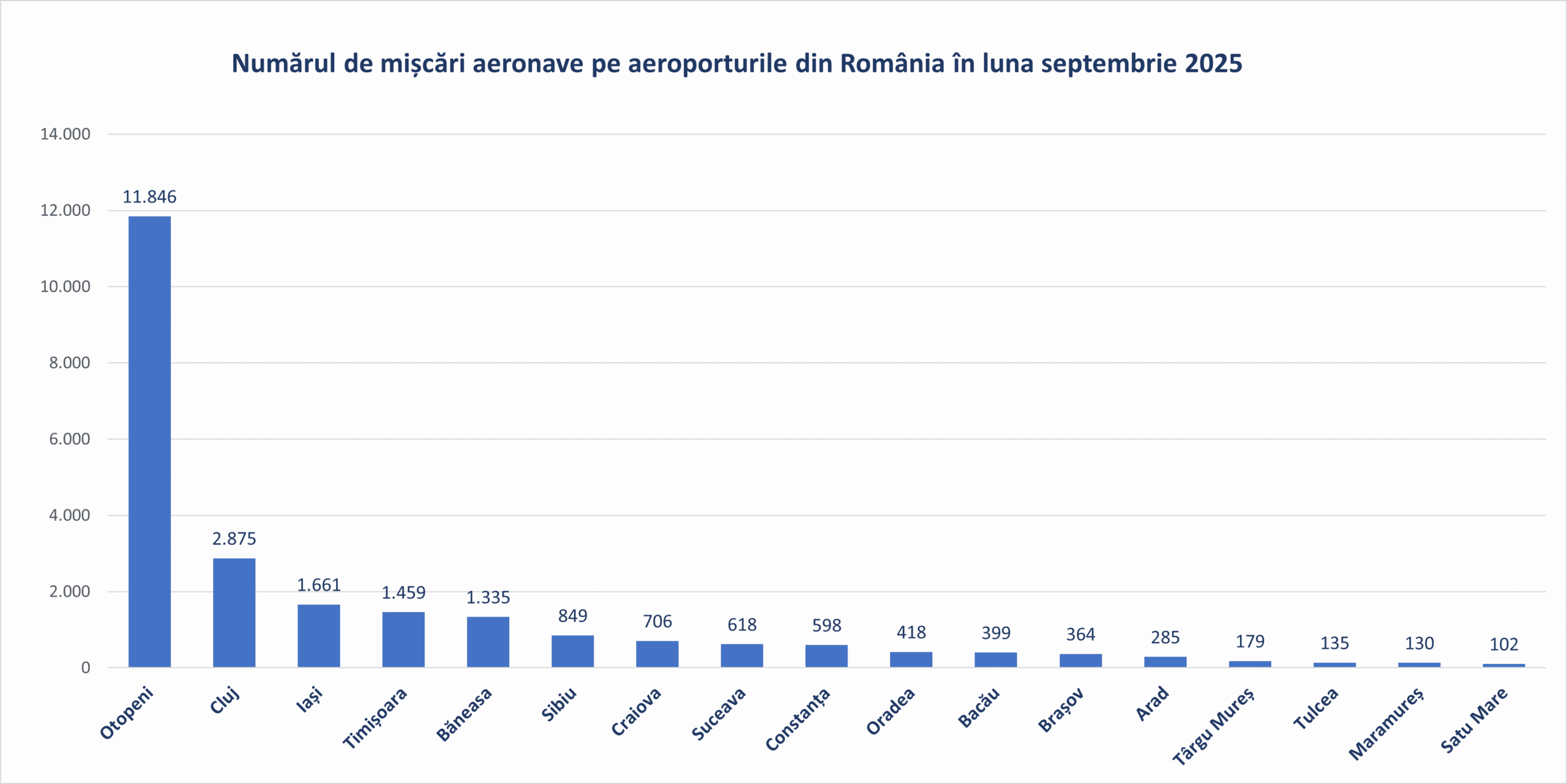 Traficul aerian înregistrat pe aeroporturile din România în luna septembrie 2025
