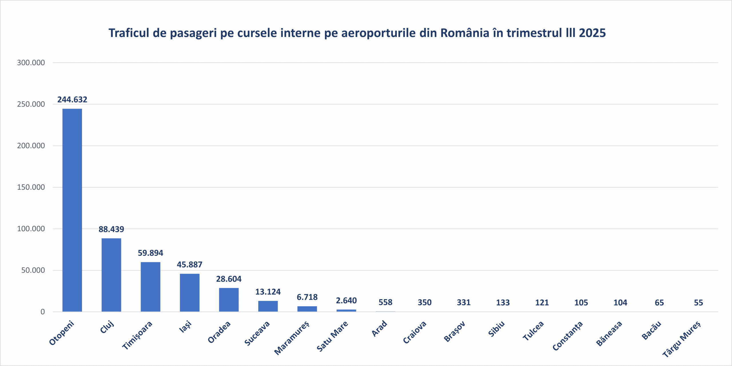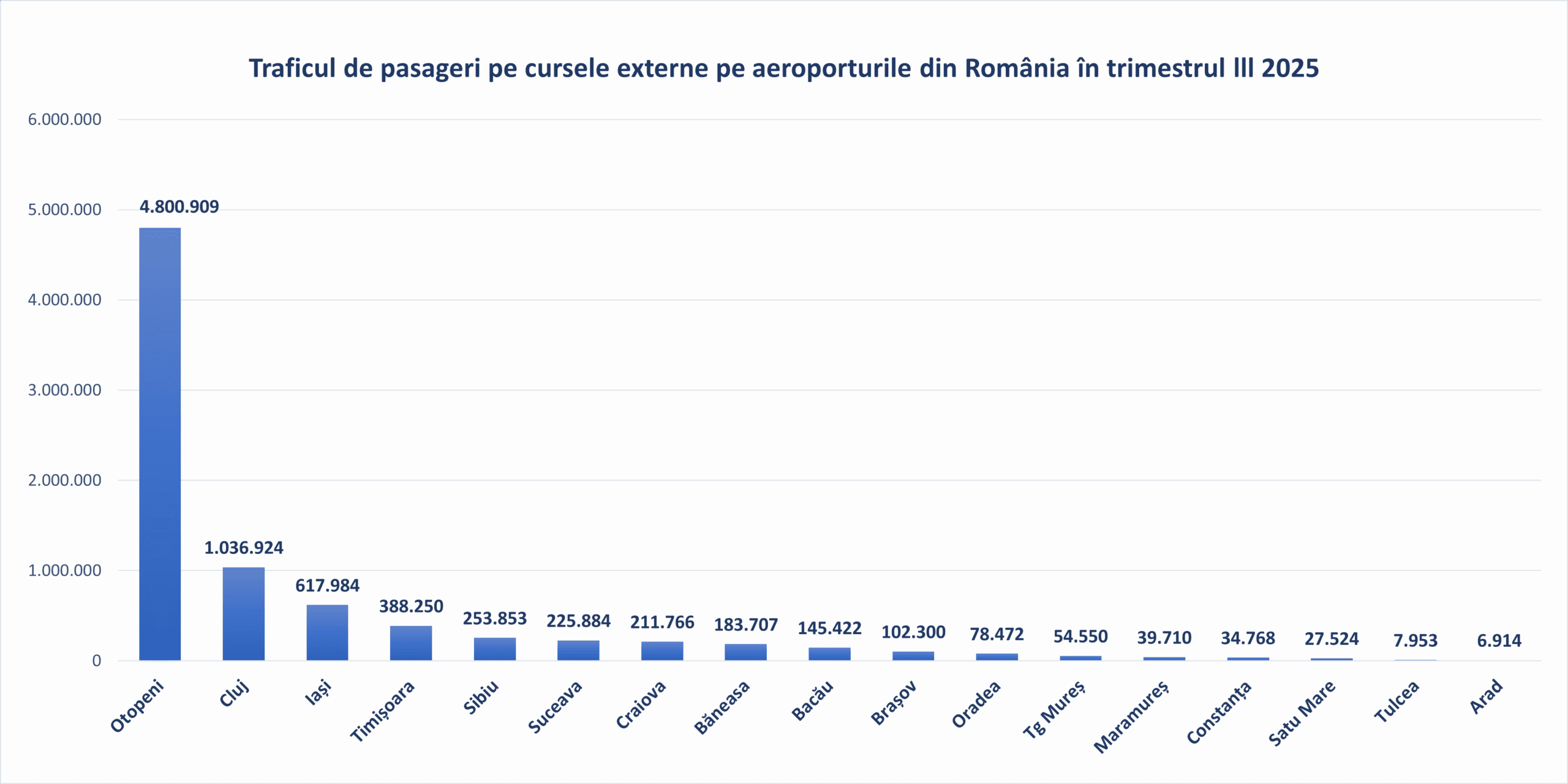 Traficul de pasageri pe aeroporturile din România în trimestrul lll al anului 2025