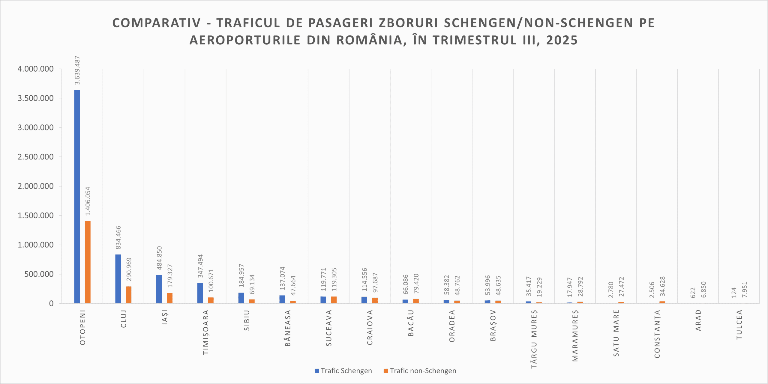 În trimestrul lll al anului 2025 aeroporturile din România au înregistrat peste 10,2 milioane de pasageri, marcând o creștere de 38% față de aceeași perioadă a anului 2023 și de 29% față de trimestrul lll 2024. Tendința ascendentă este rezultatul dezvoltării continue a rețelelor de rute și confirmă interesul tot mai mare al pasagerilor pentru zborurile din și spre România.