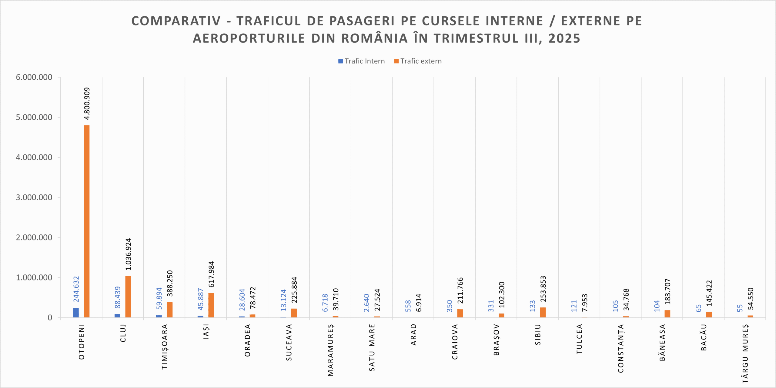 Traficul de pasageri pe aeroporturile din România în trimestrul lll al anului 2025